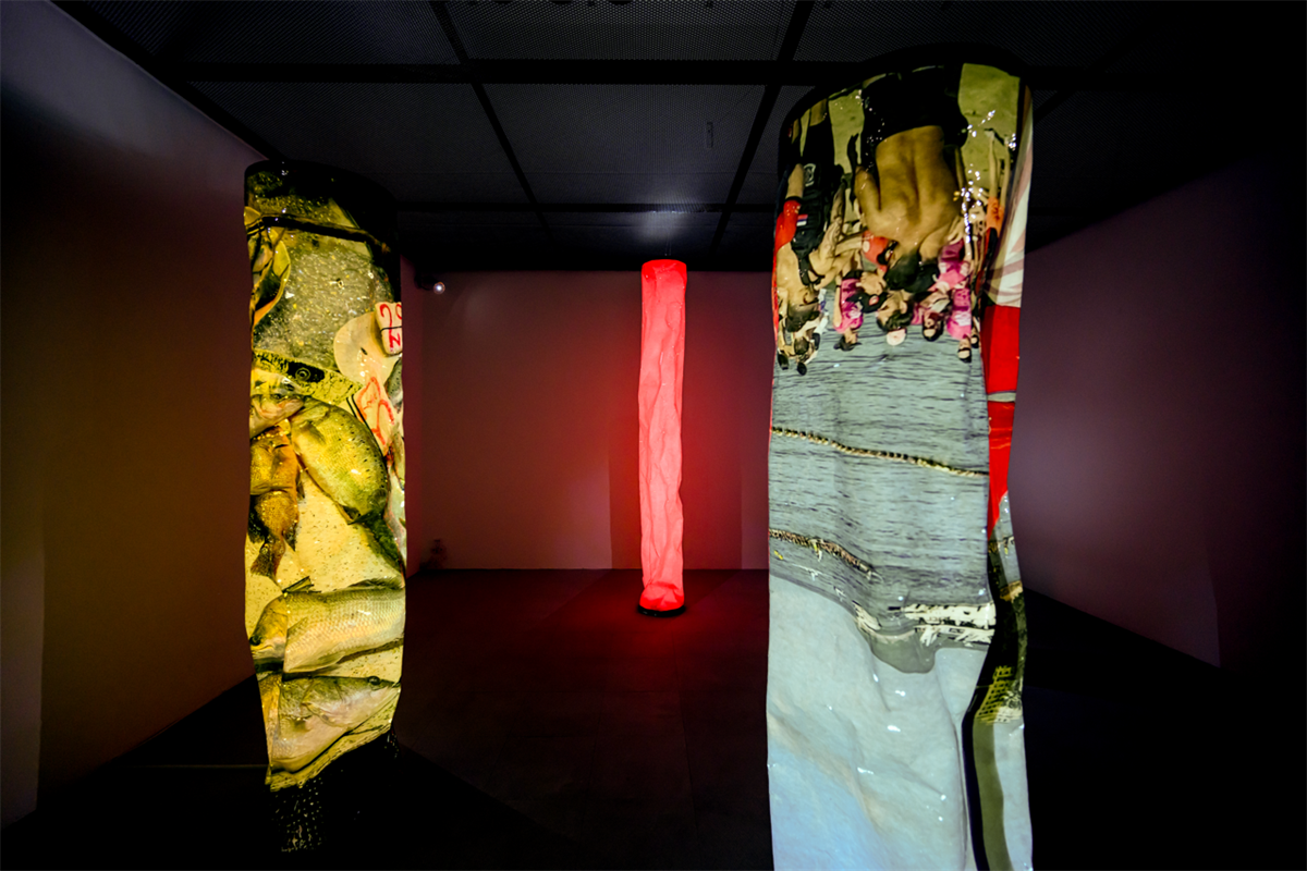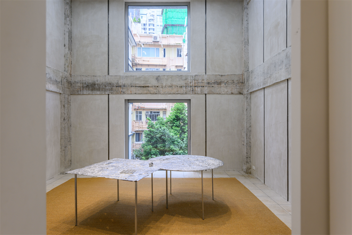 Situated on the gallery’s rooftop space is It, a sculpture that is evocative of the many transformations that take place in Chen’s chapters: fish that yearn for a life ashore, and Tanka people who fled the land thousands of years ago. The Tanka people are a unique community of fishermen who make boats their home. Some scholars have traced their origins to the ancient Yue ethnic group, who fled from the rule of Qin and migrated into the sea. Chen portrays in her story the last Tanka, who emits the fragrance of squeezed shoulang yam juice from his shirt, complacent and proud of his unique legacy and identity. This Tanka frowns upon Song Dynasty scholar Zhou Qufei’s account that demonises his people, and is yet pleased with naming himself after Zhou’s words: “roaming between heaven and earth.” In the artist’s signature style, Nabuqi’s It reflects upon a number of traditions of modern sculpture in terms of materiality and form, and shapes a paradoxical form that is stubborn yet soft, firm yet hollow—a structure that stands by a “key,” a story.