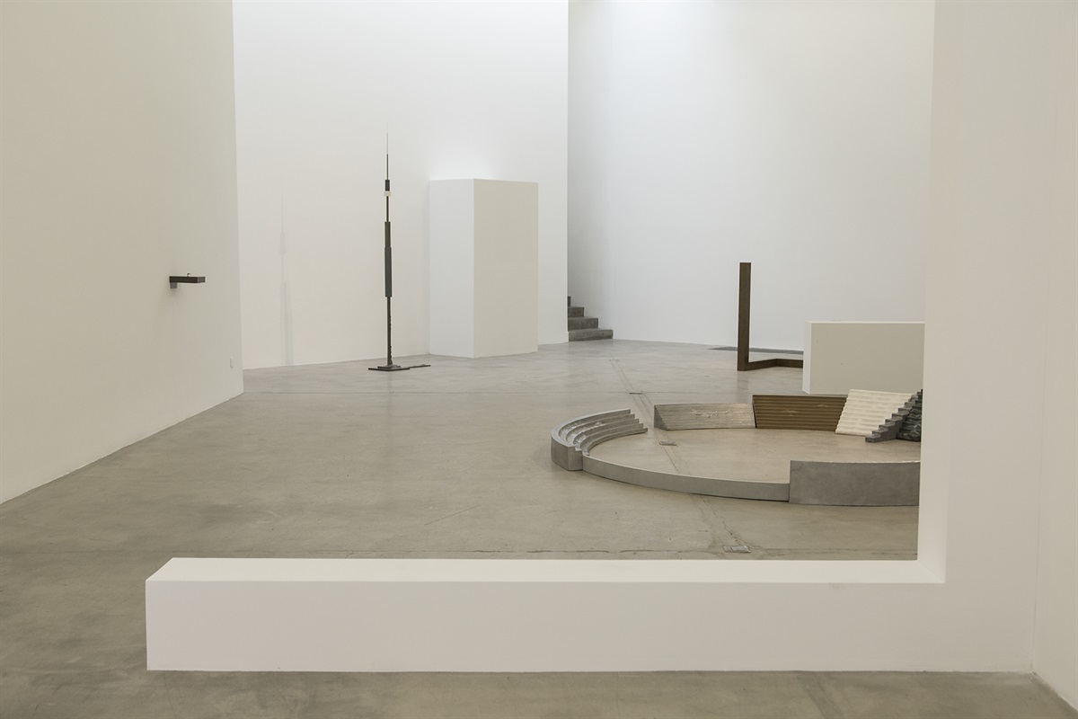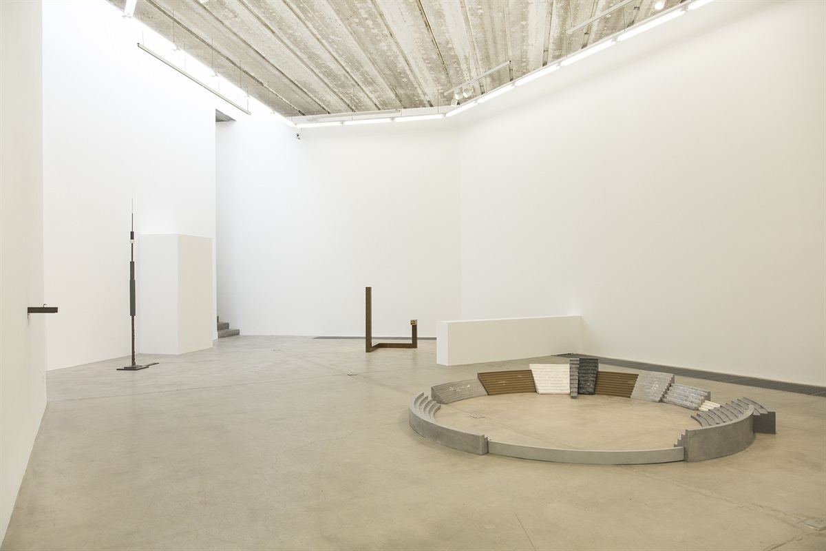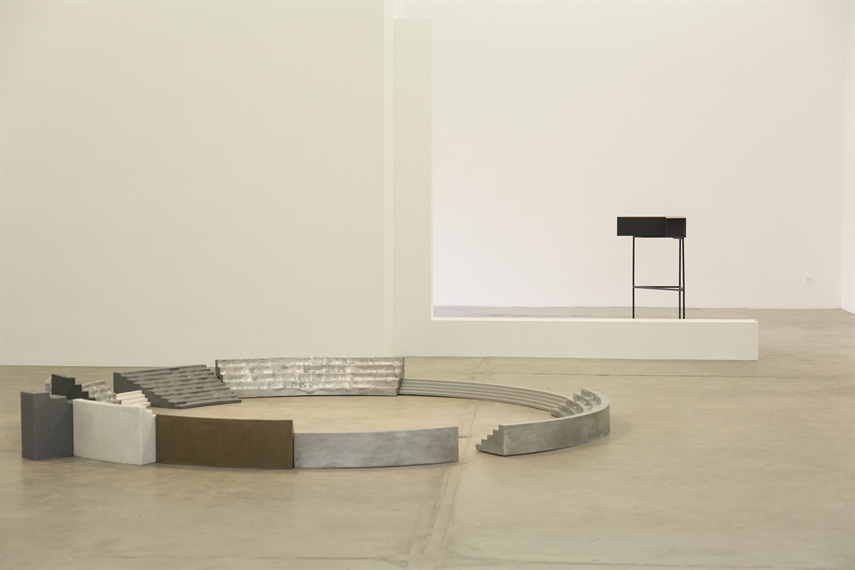 Continuing from the “rhizomatous” forms of free-standing objects such as “A View Beyond Space”(2015) and the notion of seeing the unseen in “Memories, But not from the past” (2015) presented in the artist’s first solo exhibition “Parallel”, Nabuqi explores the dichotomous notions of center/periphery, accessible/inaccessible, fragmentary/unabridged for Two-way Entryby means of assemblage.Confronted with the reality of living in an ever-expanding urban environment, where the notion of this architecture and public space are constantly evolving and transforming. The ground floor gallery is set up as a constellation of typical public spaces of the series, “The doubtful site” (2018), that brings together public spaces such as the stadium, the monument, the park and passages from our urban environment. While each piece corresponds to a location people frequent and gather, yet the variety of textures, materials, forms, and constructs of these pieces invite to the viewer to make up one's own perception of these sites. In addition, the interruptive wall installations, hanging, protruding, or blocking the panoramic view of the space, further enhances the artist's intention to enrich these sites, let their functions be hindrance, complimentary or points of connection in relation to these sculptures.