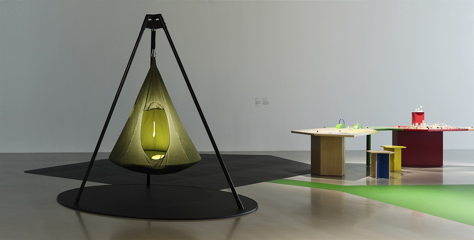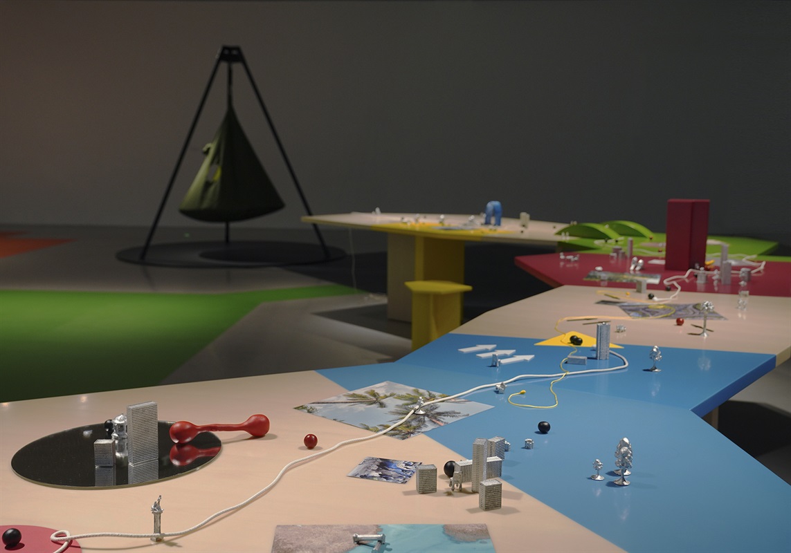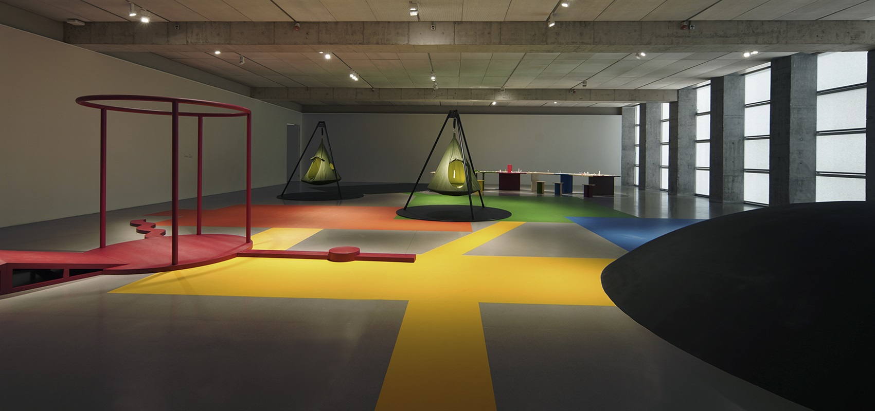 Through scenography, Gallery 0 builds a childlike indoor “playground” by combining the front hall with the inner hall, in an attempt to evoke common activities of human life. The front hall brings together many elements of urban public space, such as pavilions, landscaped terraces and children's playgrounds, while inviting the public to experience the shifting relationship between body, artwork and space, gradually establishing a personalised perception of these sites. Nabuqi has designed the recreational swing as a space for meditation or solitude, to separate the front hall and the inner hall. The work in the inner hall empowers visitors to control and lead. Not only can they overlook the landscape of the city, but they can further combine and reset it to their liking. Passing through the two spaces, from the inside to the outside, from the large to the small, the physical attributes of visitors are transformed accordingly. In this way, Nabuqi subtly blurs the lines between some established categories applied to human experience.